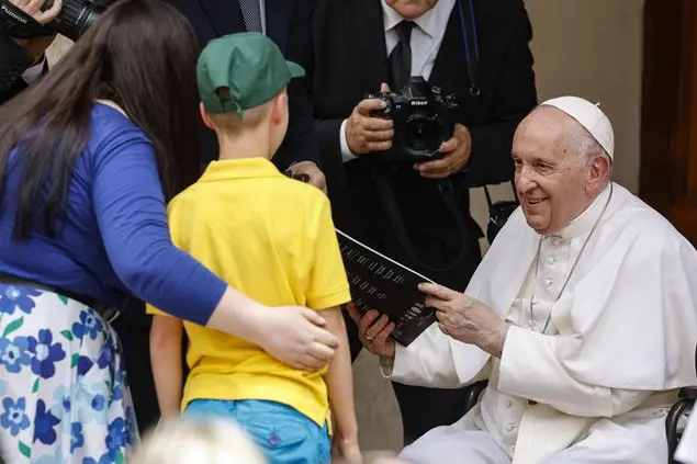 Un bimbo ucraino, uno dei profughi che si trova ora a Roma dove ha trovato accoglienza, si è rivolto così al Pontefice: «Mi chiamo Sachar, vengo dall’Ucraina. Non ho una domanda ma piuttosto una richiesta: può venire in Ucraina per salvare tutti i bambini che adesso soffrono lì?». Francesco ha risposto: «Sono contento che tu sia qui: io penso tanto ai bambini in Ucraina, e per questo ho inviato alcuni cardinali che aiutino lì e siano vicino a tutta la gente, ma soprattutto ai bambini. Io avrei voglia di andare in Ucraina; soltanto, devo aspettare il momento per farlo, sai?, perché non è facile prendere una decisione che può fare più del male a tutto il mondo che del bene. Devo cercare il momento giusto per farlo. Questa settimana prossima io riceverò rappresentanti del governo dell’Ucraina, che verranno a parlare e a parlare di una eventuale visita mia lì: vediamo cosa succede». Ai bambini fa effetto trovarsi di fronte ad una personalità così importante come il Papa, che parla con tutti i grandi della terra, che ha viaggiato tanto, che però sta anche con i più poveri e i piccoli. Sono curiosi di sapere che cosa significa fare il Papa, se è un "lavoro" pesante e in che modo Francesco sente su di sé la responsabilità del suo ruolo.
