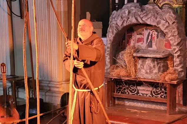 Chi c'è? Fra Marco Finco che è un frate cappuccino, arriva da Milano ed è indubbiamente dotato di una bella voce, di una buona dose di simpatia e comunicabilità che fanno presa immediatamente sul pubblico che è presente. Tra musica, canti e racconti riesce tranquillamente ad ottenere l'attenzione silenziosa e interessata di grandi e piccoli. È abituato col Centro Culturale Rosetum: recita, canta e suona per passione con altri attori, clown, musicisti e, in questi giorni, proponendo in più luoghi uno spettacolo sulla bellezza dei presepi. A Reggio racconta l'idea appassionata di un innamorato di Gesù Cristo, quale era San Francesco, di poter vedere coi suoi occhi che cosa successe la notte in cui nacque quel Bambino speciale.