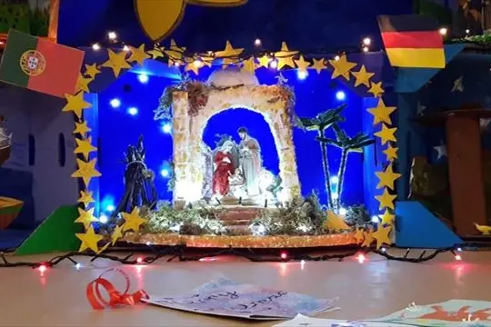 I nostri insegnanti hanno pensato di ambientare anche il Presepe nei diversi Paesi europei, con lo sfondo blu e tante luci colorate, un Presepe per conoscere altri Paesi. Tutte le classi hanno lavorato sodo!
