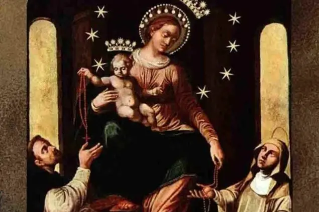 O Rosario benedetto di Maria, Catena dolce che ci rannodi a Dio, vincolo d’amore che ci unisci agli Angeli, torre di salvezza negli assalti dell’inferno, porto sicuro nel comune naufragio, noi non ti lasceremo mai più.