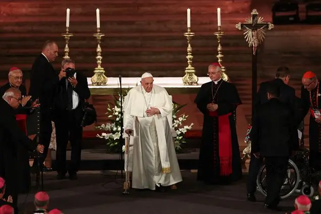 E poi, seconda scelta, portare avanti la pastorale insieme. «Nel testo Gesù affida a Pietro il compito di prendere il largo, ma poi parla al plurale, dicendo “gettate le reti”: Pietro guida la barca, ma sulla barca ci sono tutti e tutti sono chiamati a calare le reti. E quando prendono una grande quantità di pesci, non pensano di farcela da soli, non gestiscono il dono come possesso e proprietà privata» ma, racconta il Vangelo, chiamano «fecero cenno ai compagni dell’altra barca, che venissero ad aiutarli» e riempiono due barche. «Uno significa solitudine, chiusura, pretesa di autosufficienza, due significa relazione. La Chiesa è sinodale, è comunione, aiuto reciproco, cammino comune. A questo tende il Sinodo in corso»: sulla barca della Chiesa «ci dev’essere spazio per tutti. Tutti i battezzati sono chiamati a salirvi e a gettare le reti, impegnandosi in prima persona nell’annuncio del Vangelo». Se non c’è questa corresponsabilità la Chiesa invecchia. Il Papa insiste: «Mai un Vescovo senza il proprio presbiterio e il Popolo di Dio; mai un prete senza i confratelli; e tutti insieme – sacerdoti, religiose, religiosi e fedeli laici – come Chiesa, mai senza gli altri, senza il mondo. Senza mondanità, ma non senza il mondo».