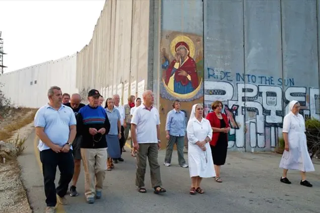 Nella vicina Betlemme però, c’è una donna che non si arrende. Si chiama Donatella Lessio, è una suora francescana elisabettina, ha 54 anni e ogni venerdì alle 17.30 (alle 18 d’estate) recita il Rosario lungo il muro che divide Israele dalla Cisgiordania. «Lo facciamo dal 2004, ormai abbiamo imparato a cadenzare i passi sulle decine». Con la religiosa pregano le consorelle, i fratelli delle scuole cristiane lasalliane e spesso si aggrega anche una signora palestinese che abita vicino al muro. Altri palestinesi vorrebbero unirsi alla preghiera ma temono ritorsioni. «Poi ci sono i gruppi di pellegrini: capita anche di arrivare a 200 persone», riferisce suor Lessio.