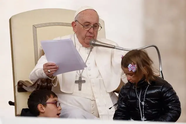 Bergoglio si è soffermato su un curioso fuoriprogramma con protagonisti due bambini, un ragazzo e una ragazza, che all'inizio dell'udienza si sono seduti ai piedi della postazione del Papa, al centro del sagrato di piazza San Pietro, e hanno seguito da lì parte della catechesi: «Prima di parlare di quello che ho preparato, vorrei attirare l’attenzione su questi due bambini, ragazzi, che sono venuti qui. Loro non hanno chiesto permesso, non hanno avuto paura: sono venuti qui. Sono coraggiosi. E questo ci fa capire come dobbiamo comportarci con il Signore: avvicinarci con libertà. Ci hanno dato un esempio di come ci si comporta con Dio: è stato un esempio per tutti». Poi ha aggiunto: «Un po’ freddino, no? Ma è bello», il saluto alle migliaia di fedeli presenti in piazza San Pietro.