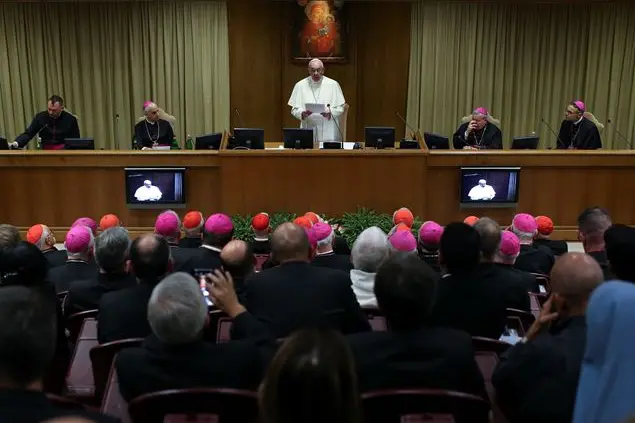 C’è il cuore del concilio Vaticano II, abbondantemente citato. Ci sono i suoi predecessori, due dei quali (Roncalli e Wojtyla) esplicitamente ricordati, e gli altri (Montini, Luciani, Ratzinger) da considerarsi presenti, visto lo spirito che permea il discorso. La Chiesa è chiamata a «custodire» e a «proseguire», ha insistito il Papa, «è necessario e urgente che dinanzi alle nuove sfide e prospettive che si aprono per l’umanità, la Chiesa possa esprimere le novità del Vangelo di Cristo che, pur racchiuse nella Parola di Dio, non sono ancora venute alla luce».