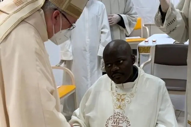 La richiesta al Papa dei superiori di Livinius Esomchi Nnamani, 31 anni, arrivato due anni fa in Italia dalla Nigeria, era partita il mercoledì santo. Dopo poche ore a padre Daniele Libanori, vescovo ausiliare di Roma, arrivava l’autorizzazione ad amministrare l’ordinazione presso il presidio sanitario Medica Group Casilino. «Verso mezzogiorno del mercoledì ho ricevuto una mail con una copia del documento scritto a mano dal Papa. E il giovedì, alle messa crismale, ho avuto l’originale della lettera inviata al generale dell'Ordine della Madre di Dio, in cui si acconsentiva». Vista la situazione del ragazzo, infatti, non c’era tempo per passare tutta la trafila burocratica ordinaria. Dopo Pasqua la situazione verrà sanata sotto il profilo giuridico. A San Pietro Libanori si ritrova con padre Davide Carbonaro, parroco di Santa Maria in Portico in Campitelli e superiore della comunità che ha ospitato in questi anni il seminarista nigeriano. Prendono l’olio crismale appena consacrato e insieme agli altri confratelli si dirigono all’hospice. La direzione sanitaria trova uno spazio per la celebrazione, provvede a mettere in atto le norme di sicurezza anticovid, per un rito che prevede necessariamente il contatto fisico, con l’unzione del capo e delle mani dell’ordinando. Infermieri e medici partecipano alla celebrazione, con i parenti di Livinius collegati via social dalla Nigeria. «Era molto debole, sulla carrozzina, ma sorrideva e partecipava. Per due volte è riuscito a mettersi in piedi. È stata una celebrazione dignitosa e sobria. Dopo la consacrazione si è avvicinato e ha celebrato la sua prima messa con me», dice Libanori. «Ha dato la sua prima benedizione ai confratelli e ai medici presenti. C’è stata grande commozione, eravamo tutti consapevoli di condividere un momento importante di una vita agli sgoccioli, con la famiglia lontana». Durante l’omelia, rivolgendosi al giovane, il vescovo gli ha detto: «Attraverso questo dono il Padre vuole sostenerti perché tu possa vivere in pienezza la prova alla quale ti ha chiamato. Da sacerdote sarai unito a Gesù per fare del tuo corpo un'offerta gradita a Dio. Il nostro sacerdozio infatti raggiunge il suo vertice quando assieme al pane e al vino, sappiamo offrire tutto noi stessi, le cose che il Signore ci ha dato, e la nostra stessa vita».