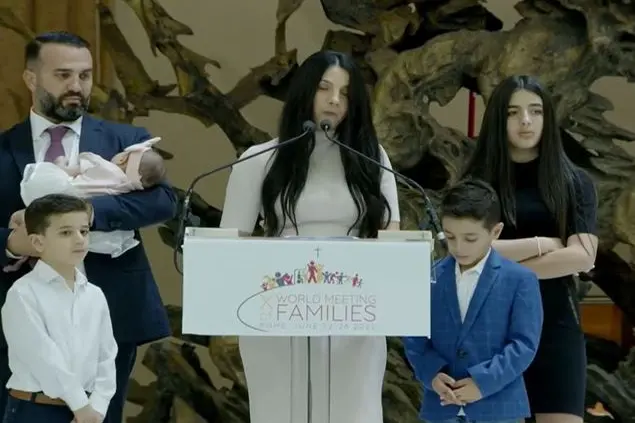 Sulle orme della famiglia Beltrame Quattrocchi l’ultima sessione di lavori del X incontro mondiale delle famiglie che si sta svolgendo a Roma si interroga sulla santità nelle diverse situazioni. Ne parlano Laura e Alessandro Tacchini, Sorem e Elizabeth Johnson, Stella e Victor Dominguez Acosta, Agnes Sandra Wigianti e Taufiq Hidayat, lui in origine musulmano e lei cristiana, che hanno comincniato a pregare insieme fino alla conversione di lui. Ma ne parlano, soprattutto, Daniel e Leila Abdallah (nella foto di copertina), cristiani maroniti sposatisi in Libano, residenti in Australia e genitori di sette figli, l’ultima di dodici settimane. Daniel e Leila Abdallah raccontano la loro tragedia familiare accaduta due anni fa quando tre dei loro figli, mentre andavano insieme a prendere un gelato, sono stati travolti da un’auto guidata da un ubriaco e sono morti. Raccontano quel momento, i sensi di colpa per aver dato l’autorizzazione ad allontanarsi, la rabbia, ma anche la forza del perdono «che parte da noi, non dobbiamo aspettare che siano gli altri», dice Leila. Una testimonianza straziante, con il ricordo del momento della morte e della preghiera sul luogo dell’incidente, «sette volte una per ognuno dei miei figli» alla Madonna di Fatima, una pesantezza «come se stessi percorrendo una via crucis. I giornalisti erano senza parole, cosa si può chiedere a una madre che ha perso metà dei suoi figli. Ho parlato con il cuore e ho detto, non odio chi li ha uccisi, voglio poter perdonare nel mio cuore, ma voglio che il tribunale sia giusto. Quando i giornalisti mi hanno chiesto cosa potevano fare per noi, ho chiesto di venire a pregare. E così è successo fino al funerale e anche dopo il funerale. I notiziari parlavano di perdono e di fede più che dell’incidente. Tanti si chiedevano come facevo ad avere ancora la fede, come potevo ancora amare un Dio che mi aveva fatto questo, ma, come ha detto Danny, era una cosa più grande di noi». E il marito insiste, «chiunque conosce Leila sa che lei avrebbe perdonato. Noi abbiamo costruito la nostra famiglia sulla preghiera». E il perdono non è più un fatto privato, ma qualcosa che coinvolge la comunità, la città, il Paese, il mondo intero. «Non serve un Dio che ci mette alla prova», dice Daniel, «ma un Dio che ha sofferto prima di noi, che ci ha detto lascia andare me per primo per indicarti cosa fare con il dolore. Dio mi ha mostrato come passare attraervso la peggiore sofferenza e perdonare chi gha fatto questo per non restare fermi a quella notte. Perdonare è una scelta che si fa perché Gesù ci ha chiesto di farlo e ci ha spiegato perché perdonare: “perché non sanno quello che fanno”. Il perdono dà potere, c’è libertà nel perdono, è un segno di forza. È un dono che fate a voi stessi e agli altri. Permette di raggiungere la grandezza e vi guida verso la santità».