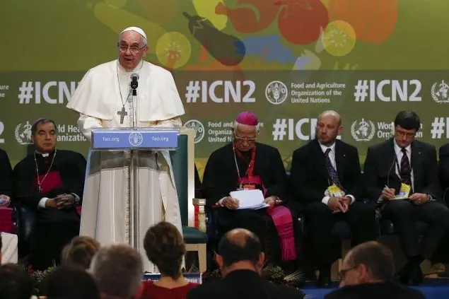 «Ma viviamo in un’epoca in cui i rapporti tra le nazioni sono troppo spesso rovinati dal sospetto reciproco, che a volte si tramuta in forme di aggressione bellica ed economica, mina l’amicizia tra fratelli e rifiuta o scarta chi già è escluso», ha osservato il Papa. «Lo sa bene chi manca del pane quotidiano e di un lavoro dignitoso. Questo è il quadro del mondo, in cui si devono riconoscere i limiti di impostazioni basate sulla sovranità di ognuno degli Stati, intesa come assoluta, e sugli interessi nazionali, condizionati spesso da ridotti gruppi di potere». Eppure le persone e i popoli sono lì ed «esigono che si metta in pratica» la giustizia legale, quella contributiva e quella distributiva. Per questo, ha sottolineato il Santo Padre, i piani di sviluppo e il lavoro delle organizzazioni internazionali dovrebbero tener conto del desiderio, «tanto frequente tra la gente comune», di vedere in ogni circostanza rispettati i diritti fondamentali della persona umana e, soprattutto, della persona che ha fame. «Quando questo accadrà – ha proseguito il Papa - anche gli interventi umanitari, le operazioni urgenti di aiuto e di sviluppo – quello vero, integrale – avranno maggiore impulso e daranno i frutti desiderati». Certamente «l’interesse per la produzione, la disponibilità di cibo e l’accesso a esso, il cambiamento climatico, il commercio agricolo» devono ispirare le regole e le misure tecniche di tali azioni, ma non solo: «La prima preoccupazione deve essere la persona stessa, quanti mancano del cibo quotidiano e hanno smesso di pensare alla vita, ai rapporti familiari e sociali, e lottano solo per la sopravvivenza».