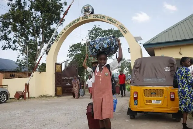 Nella foto Ansa, genitori vanno a prendere i loro figli al Federal Government Girl's College Bwari ad Abuja. Il governo federale della Nigeria ha ordinato la chiusura temporanea di 41 scuole dell'unità federale a causa dei crescenti casi di rapimenti in tutto il Paese.