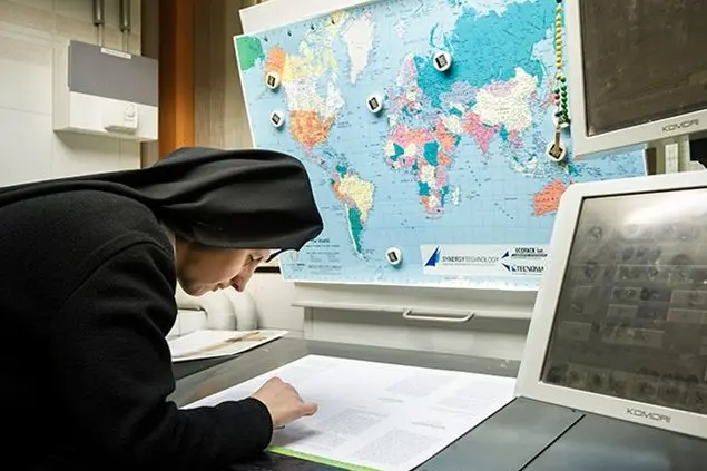 Colpisce, entrando nel convento in mattoni e nell’annessa tipografia in via papa Giovanni XXIII a Pessano, vedere le suore, vestite con un abito di foggia antica, lavorare con i più evoluti strumenti tecnici. Ancora più caratteristico il mix di odore di inchiostro e profumo di incenso che vi si respira, che rimanda all’unione tra il lavoro concreto e l’ispirazione spirituale profonda… Spiega suor Dolores: «La fedeltà alla tradizione, dal punto di vista del messaggio cristiano, per noi va di pari passo con la capacità di innovazione tecnologica, così da poter arrivare a tutti». Di qui la decisione di sbarcare sui social network, «per condividere giorno per giorno quello che viviamo», oppure la realizzazione di app dedicate, ad esempio sulle più belle preghiere dei santi. Per essere all’altezza delle sfide di oggi e domani, le suore hanno investito in formazione, seguito corsi di aggiornamento e scommesso sulle nuove tecnologie: suor Nicodema Babula, ad esempio, si occupa della parte video, della produzione di cd e dvd e della realizzazione delle app.