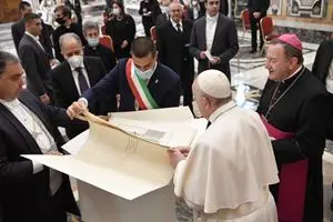 Dante, infatti, ci invita ancora una volta a ritrovare il senso perduto o offuscato del nostro percorso umano”. Nel 1965, in occasione del VII centenario della nascita di Dante, San Paolo VI fece dono a Ravenna di una croce d’oro per la sua tomba che, ha affermato il Papa, “in occasione di questo centenario, tornerà a splendere nel luogo che conserva le spoglie mortali del Poeta. Che possa essere un invito alla speranza, quella speranza di cui Dante è profeta”. Dante, infatti, “ci invita ancora una volta a ritrovare il senso perduto o offuscato del nostro percorso umano” nonostante la sensazione che “questi sette secoli abbiano scavato una distanza incolmabile tra noi, uomini e donne dell’epoca postmoderna e secolarizzata, e lui, straordinario esponente di una stagione aurea della civiltà europea”. “Eppure qualcosa ci dice che non è così” soprattutto “là dove l’allegoria lascia lo spazio al simbolo, dove l’umano traspare più evidente e nudo, dove la passione civile vibra più intensa, dove il fascino del vero, del bello e del bene, il fascino di Dio fa sentire la sua potente attrazione”.