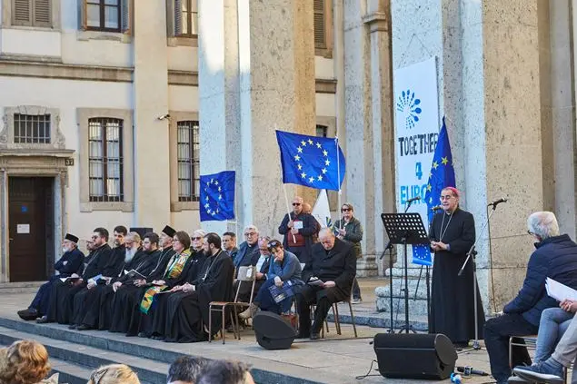 Ma questa umiliazione - questa sera, in questo tempo, dai Padri fondatori dell’Europa e per tutti questi decenni - non ci induce allo scoraggiamento. Ci insegna che costruiremo l’Europa non perché saremo più bravi dei nostri padri, più spirituali e più liberi, ma perché ci affideremo alla preghiera di Gesù. Camminiamo verso una nuova Europa, noi, Chiese cristiane, perché lasciamo che Gesù preghi per noi: “che siano tutti una cosa sola, come tu, Padre, sei in me e io sono in te, anch’essi siano in noi. Così il mondo crederà che tu mi hai mandato”.