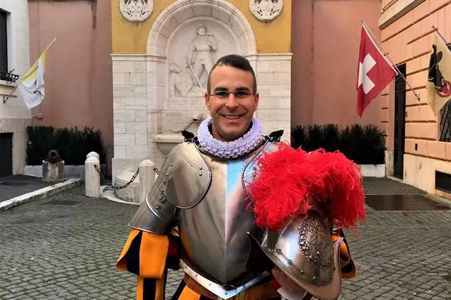 A partire dal Medioevo, per tanti secoli la Svizzera, allora Paese povero e agricolo, fornì soldati ai sovrani europei. I mercenari combattevano, ma prestavano servizio anche come guardie del corpo all’interno di corti raffinate. Apprezzandone valore militare, disciplina e fedeltà, i Papi scelsero le Guardie svizzere per il Vaticano. Nel 1479 Sisto IV concluse un accordo con la Confederazione elvetica che prevedeva la possibilità di reclutare suoi cittadini. Il 22 gennaio 1506 un gruppo di 150 soldati, dopo una marcia di 800 chilometri lungo la Via Francigena, attraversò la Porta del Popolo entrando per la prima volta nella Città Eterna per servire papa Giulio II. Già nel 1527 il Corpo si distinse durante il sacco di Roma: il 6 maggio di quell’anno 147 Guardie svizzere morirono, ma grazie al loro sacrificio papa Clemente VII poté salvarsi riparando dentro Castel Sant’Angelo. In ricordo di quell’epico episodio di battaglia del 1527, ogni 6 maggio le reclute della Guardia giurano la loro fedeltà al Papa. Ovviamente è cambiata radicalmente la motivazione che spinge i giovani ad arruolarsi. La Svizzera è oggi un Paese ricco e chi lo lascia lo fa perché, credente, vuole dedicare qualche anno al servizio del Pontefice e della Chiesa. In Vaticano le Guardie sono seguite da un cappellano. Nascono anche vocazioni al sacerdozio. Come quella di Didier Grandjean, 32 anni.