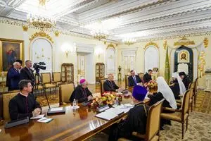 Le due delegazioni erano sedute a un tavolo l’una di fronte all’altra alla presenza di un traduttore, dei collaboratori del patriarca e del nunzio Giovanni D’Aniello: hanno discusso dell'importanza che «tutte le forze del mondo si uniscano per prevenire un grande conflitto armato».