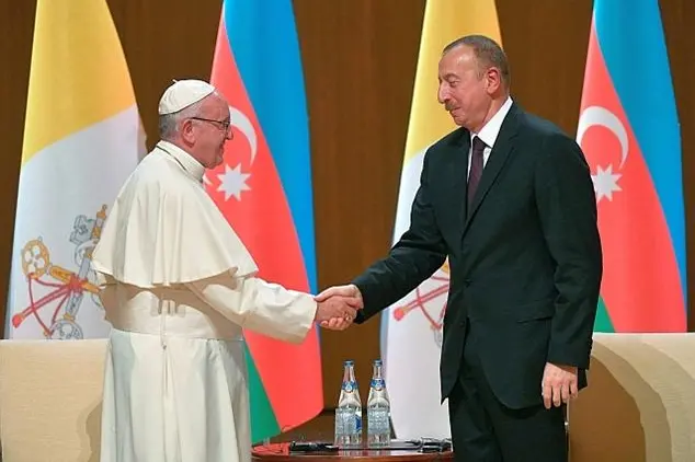 «Una visita dall'importanza particolare non solo per le relazioni tra Vaticano e Azerbaijan, ma anche per questo dialogo tra le civiltà». Il presidente della Repubblica Ilham Aliyev accoglie papa Francesco nel suo palazzo e poi ancora nel centro Heydar Aliyev parlando di dialogo e multiculturalismo. «In questo momento è tanto importante dialogare», sottolinea il Papa. E, ricordando le ricchezze spirituali, culturali e materiali Francesco loda l'Azerbaijan: «Voi date un esempio di libertà religiosa così grande», dice.