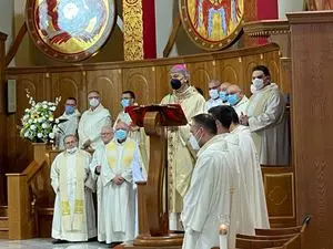 Giovedì 20 maggio, un minuto dopo le 17 le note dell'organo risuonano nella chiesa e un corteo di ragazze e ragazzi in saio bianco anticipa l'arrivo di don Mimmo Battaglia sull'altare. Lo sguardo deciso, la voce ferma, l'arcivescovo di Napoli prende la parola e inizia con un “grazie”. «Grazie ai parroci, grazie a voi tutti che avete accolto l'invito ad essere qui per trovare la luce e la grazia per vivere la nostra storia». Don Mimmo parla a capo scoperto, senza bastone pastorale. Parla da uomo, fratello, pastore, padre. E le parole della sua omelia si stagliano come fendenti nel silenzio della navata. «Dentro il nostro cuore dobbiamo trovare il coraggio di dire no. No alla paura, alla rassegnazione. Questo è il tempo della responsabilità, il tempo di trovare il coraggio di camminare insieme per la vita e per la dignità».