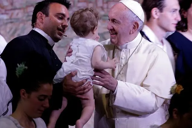 L’altro gesto di umanità che il Papa sottolinea è quello dell’attenzione agli anziani che, «anche quando non godono di buona salute, restano in famiglia e sono sostenuti dai fratelli e dalle sorelle di tutta la comunità». Infine i regali della comunità al Pontefice. «Doni di famiglia, vengono dal cuore, semplici, ma ricchi di significato», dice il Papa. Tra questi i bambini portano una pietra bianca con scritto Francesco, «per ricordare che il primo Papa è stato Pietro e su questa pietra edificherò la mia Chiesa e per questo speriamo che lo possa tenere sulla sua scrivania a ricordo di questa visita». Una visita breve, prima di ripartire per Loppiano, «un incontro breve, ma carico di significato e di emozione», conclude Francesco, «lo porterò con me, specialmente nella preghiera. Porterò i vostri volti: i volti di una grande famiglia col sapore schietto del Vangelo».