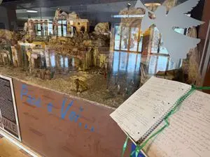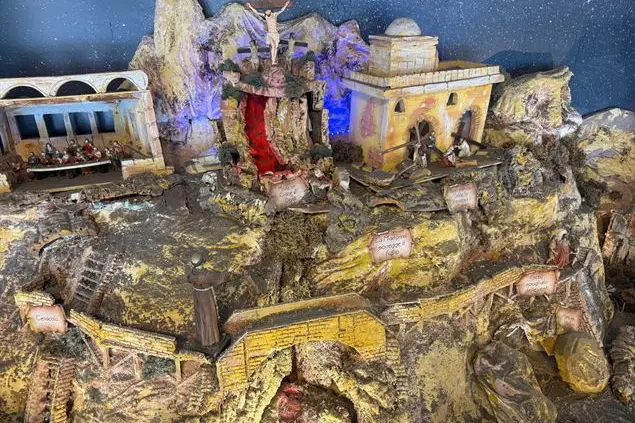 «Pace a voi». La scritta che campeggia sotto il presepe pasquale allestito nella hall del Policlinico Gemelli, a Roma, dà subito un po’ di ristoro a chi arriva qui in visita a un parente malato o in attesa di un ricovero o degli esiti di qualche accertamento. Attingendo alle antiche tradizioni che, oltre al classico che racconta la nascita di Gesù, metteva in luce anche, durante la quaresima, il mistero della sua morte e resurrezione, l’opera è composta dai cosiddetti “diorami”, cioè ambientazioni in scala ridotta di diverse scene. Dall’ultima cena alla morte di Gesù in croce, fino all’ascensione con l’altare posizionato nella grotta di Greccio, con gli affreschi che riproducono la nascita di Gesù avvolto in fasce ma deposto in una tomba, a far intravedere già il mistero pasquale. E c’è un san Francesco anche nella scena principale del presepe, quella della morte in croce, con il santo d’assisi che assiste di fronte. Il presepe, infatti, ha voluto ricordare anche gli 800 anni delle stimmate ricevute da Francesco nel santuario de La Verna.