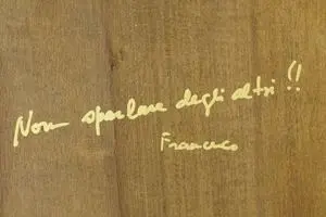 Il terzo cartello, “vietato comandare” è l’ultimo in ordine di tempo. È comparso sulla porta del santuario pochi giorni fa. «L’idea mi è venuta mentre celebravo l’Eucarestia» spiega il religioso. «Mi torna in mente una frase di don Tonino Bello, che in più occasioni il Papa ha voluto riprendere: “chi non vive per servire, non serve per vivere”. Guai a dimenticare che la Chiesa è un’esperienza di servizio e non di potere». Eppure siamo umani, troppo umani, a volte. «Così, un po’ a tutti i livelli, tra i religiosi come tra i laici, si cerca di affermare il proprio piccolo privilegio, di esprimere, in un modo o nell’altro, la propria superiorità sugli altri. Ma Gesù ci ha chiamati amici e ci ha indicato la via del servizio per essere felici. E proprio questo che la Chiesa dovrebbe essere: un’assemblea di amici, non un palcoscenico per i vip».