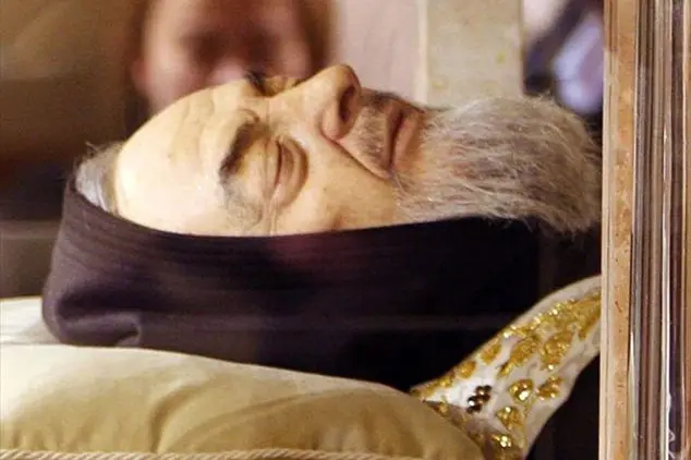 L'ostensione permanente delle spoglie mortali Il 19 aprile 2010 la salma del santo è stata traslata nella cripta della nuova Chiesa di Padre Pio, decorata con i mosaici del sacerdote gesuita sloveno Marko Ivan Rupnik e con il soffitto ricoperto di foglia oro, ricavato dalla fusione degli ex voto che i fedeli negli anni hanno donato a san Pio. Dal 1º giugno 2013 la salma è permanentemente esposta alla pubblica venerazione. Dall’8 al 14 febbraio 2016, le spoglie del Santo saranno esposte alla venerazione dei fedeli nella Basilica di San Pietro nell’ambito del Giubileo straordinario della Misericordia, indetto da Papa Francesco per il prossimo anno. Per l’occasione, il 13 febbraio si terrà anche il Giubileo dei “Gruppi di preghiera di Padre Pio” che saranno ricevuti in udienza dal Pontefice.
