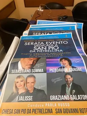 In serata, alle 21, sull’ampia spianata denominata “chiesa a cielo aperto”, un evento con le esibizioni canore di Pierdavide Carone, i Jalisse e Graziano Galatone e con la partecipazione dell’attore Sebastiano Somma, interprete di alcuni stralci tratti dagli scritti di Padre Pio.