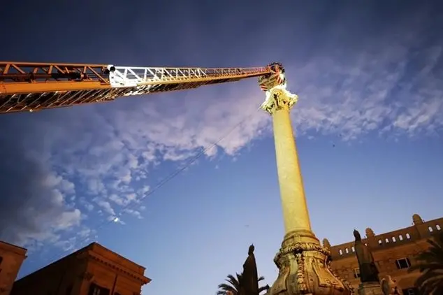 Accolta la supplica del padre Napoli, l’Imperatore inviò un Dispaccio, con il quale ordinava ai Ministri dei Beni Patrimoniali di far demolire le case di fronte alla facciata della chiesa di San Domenico e di erigere una statua in bronzo alla Vergine Immacolata sopra una colonna. A quel che pare, tuttavia, le finanze del Real Patrimonio era esauste e i Ministri si affrettarono a comunicare al padre Napoli che l’ordine dell’Imperatore, per il momento, non poteva essere realizzato per mancanza di fondi. L’intraprendente domenicano non si fece certo intimorire. Ritornò a Vienna e rinnovò all’Imperatore la richiesta d’un suo diretto intervento che si concretizzò con un altro Dispaccio, questa volta dai toni molto decisi. Al suo ritorno a Palermo i funzionari del Real Patrimonio, quasi per incanto, trovarono i soldi necessari e procedettero all’esecuzione di quanto ordinato da Carlo VI. Lo stesso padre Napoli ne tracciò il progetto e l’8 Dicembre 1724, fu posta solennemente la prima pietra alla presenza del Vicerè don Gioacchino Fernandez Portocamero e di tutto il Senato palermitano. Nella fossa fu calata anche una medaglia coniata appositamente, recante da un lato l’effigie dell’Imperatore e sull’altro la Colonna dell’Immacolata con l’iscrizione dettata dal magistrato messinese Giacomo Longo: “Sacrum Immaculatae Virginis Trophaeum, exturbatum Barchinone, ex Caroli VI Imperatoris voto Panormi resurgit anno 1724”. Morto il padre Napoli nel 1725, l’opera fu proseguita da don Giovanni Amico, canonico trapanese, e fu inagurata il 27 ottobre 1726.