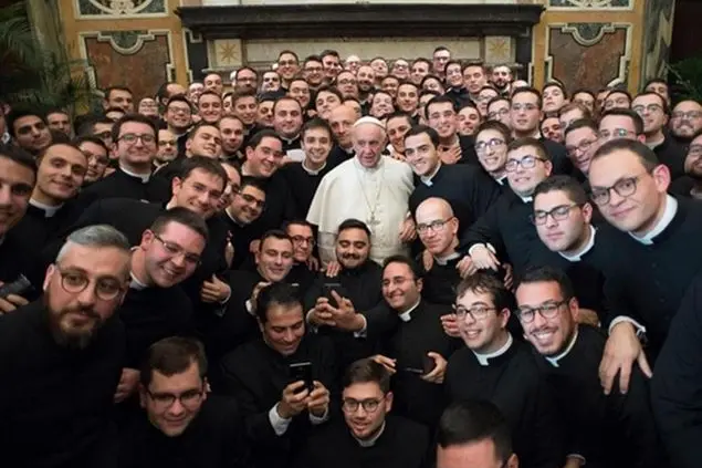 Un passaggio del discorso che papa Francesco ha rivolto oggi al simposio sulla teologia fondamentale del sacerdozio, promosso dalla Congregazione dei Vescovi, risulta provocatorio e al tempo stesso generativo di una riflessione che vada in profondità. Ecco cosa ha detto il vescovo di Roma: «La vita di un sacerdote è anzitutto la storia di salvezza di un battezzato. Il Cardinale Ouellet ha detto questa distinzione tra sacerdozio ministeriale e battesimale. Noi dimentichiamo a volte il Battesimo, e il sacerdote diventa una funzione: il funzionalismo, e questo è pericoloso. Non dobbiamo mai dimenticare che ogni vocazione specifica, compresa quella all’Ordine, è compimento del Battesimo. È sempre una grande tentazione vivere un sacerdozio senza Battesimo – e ce ne sono, sacerdoti “senza Battesimo” –, senza cioè la memoria che la nostra prima chiamata è alla santità. Essere santi significa conformarsi a Gesù e lasciare che la nostra vita palpiti con i suoi stessi sentimenti (cfr Fil 2,15). Solo quando si cerca di amare come Gesù ha amato, anche noi rendiamo visibile Dio e quindi realizziamo la nostra vocazione alla santità. Ben a ragione San Giovanni Paolo II ci ricordava che «”l sacerdote, come la Chiesa, deve crescere nella coscienza del suo permanente bisogno di essere evangelizzato” (Pastores dabo vobis, 25 marzo 1992, 26). E vai a dire tu a qualche vescovo, a qualche sacerdote che dev’essere evangelizzato… non capiscono. E questo succede, è il dramma di oggi».