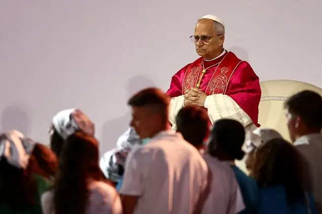 Cala il silenzio quando il Papa comincia a parlare. Sono tutti attenti alle sue parole. «Le relazioni con altre persone sono indispensabili per ciascuno di noi», dice Leone. E li incoraggia a cercare legami veri. Cita la Christus vivit, di papa Francesco per dire che «tra le molte connessioni culturali che caratterizzano la nostra vita, internet e i media sono diventati “una straordinaria opportunità di dialogo, incontro e scambio tra le persone, oltre che di accesso all’informazione e alla conoscenza”». Questi strumenti, aggiunge, «risultano però ambigui quando sono dominati da logiche commerciali e da interessi che spezzano le nostre relazioni in mille intermittenze». Ancora papa Francesco «ricordava che talvolta i “meccanismi della comunicazione, della pubblicità e delle reti sociali possono essere utilizzati per farci diventare soggetti addormentati, dipendenti dal consumo”. Ci sono algoritmi che ci dicono cosa dobbiamo pensare. «Allora le nostre relazioni diventano confuse, sospese o instabili. Quando lo strumento domina sull’uomo, l’uomo diventa uno strumento: sì, strumento di mercato, merce a sua volta. Solo relazioni sincere e legami stabili fanno crescere storie di vita buona». Anche se secoli fa, al tempo di Sant’Agostino, non c’era questo sviluppo tecnologico, lui coglieva «il profondo desiderio del nostro cuore» verso questa amicizia. «Anche lui è passato attraverso una giovinezza burrascosa: non si è però accontentato, non ha messo a tacere il grido del suo cuore. Cercava la verità che non illude, la bellezza che non passa. Come l’ha trovata? Come ha trovato un’amicizia sincera, un amore capace di dare speranza? Incontrando chi già lo stava cercando: Gesù Cristo. Come ha costruito il suo futuro? Seguendo Lui, suo amico da sempre». L’amicizia con Gesù è la nostra stella popolare», dice il Papa. E richiama Pier Giorgio Frassati, che sarà canonizzato il 7 settembre, che scriveva «vivere senza fede, senza un patrimonio da difendere, senza sostenere una lotta per la Verità non è vivere, ma vivacchiare». E conclude la prima risposta ricordando che «l’amicizia può davvero cambiare il mondo, l’amicizia è una strada per la pace».E sul come scegliere, Leone dice che «non si tratta solo di scegliere qualcosa, ma qualcuno». Rispondendo a Gaia sottolinea che «quando scegliamo, in senso forte, decidiamo chi vogliamo diventare». E il coraggio per scegliere viene anche dalla consapevolezza che non siamo noi che abbiamo scelto di venire al mondo. «Abbiamo ricevuto la vita gratis, senza sceglierla! All’origine di noi stessi non c’è stata una nostra decisione, ma un amore che ci ha voluti». Per essere liberi, spiega, «occorre partire dal fondamento stabile, dalla roccia che sostiene i nostri passi. Questa roccia è un amore che ci precede, ci sorprende e ci supera infinitamente: l’amore di Dio. Perciò davanti a Lui la scelta diventa un giudizio che non toglie alcun bene, ma porta sempre al meglio. Il coraggio per scegliere viene dall’amore, che Dio ci manifesta in Cristo. È Lui che ci ha amato con tutto sé stesso, salvando il mondo e mostrandoci così che il dono della vita è la via per realizzare la nostra persona. Per questo, l’incontro con Gesù corrisponde alle attese più profonde del nostro cuore, perché Egli è l’Amore di Dio fatto uomo». Ripete le parole di Giovanni Paolo II, che «venticinque anni fa, proprio qui dove ci troviamo» disse: «È Gesù che cercate quando sognate la felicità; è Lui che vi aspetta quando niente vi soddisfa di quello che trovate; è Lui la bellezza che tanto vi attrae; è Lui che vi provoca con quella sete di radicalità che non vi permette di adattarvi al compromesso; è Lui che vi spinge a deporre le maschere che rendono falsa la vita; è Lui che vi legge nel cuore le decisioni più vere che altri vorrebbero soffocare». La paura allora «lascia allora spazio alla speranza». Parla di scelte radicali, piene di significato come il matrimonio, l’ordine sacro, la consacrazione religiosa che esprimono «il dono di sé, libero e liberante, che ci rende davvero felici. Troviamo la felicità quando impariamo a donare noi stessi, donare la vita per gli altri». Queste scelte danno senso alla nostra vita, trasformandola a immagine dell’Amore perfetto, che l’ha creata e redenta da ogni male, anche dalla morte. Dico questo stasera pensando a Maria, ventenne, spagnola e Pascale, «entrambe hanno scelto di venire a Roma» in pellegrinaggio e sono morte. Leone, particolarmente colpito chiede di pregare anche per le loro famiglie e le loro comunità e anche per la saluta di «un ragazzo spagnolo, Ignazio Gonzales che è stato ricoverato al Bambino Gesù».