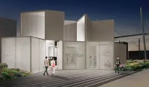 Collocata nei pressi dell’ingresso, in una posizione molto visibile lungo il decumano, l’Edicola, realizzata dallo studio Piuarch, si presenta come un cubo spezzato che declina anche architettonicamente l’idea della condivisione come ricchezza. L’involucro è il rivestimento esterno di un’idea che trova poi espressione all’interno. I visitatori, varcata la soglia, non saranno semplici spettatori, ma protagonisti di un’esperienza multimediale. Ascoltando messaggi, vedendo immagini, percepiranno con i loro sensi in che modo possa trasformarsi in realtà un messaggio paradossale come quello evangelico.