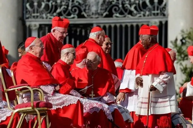 I cardinali vanno in conclave con l’abito corale, la veste, completa di zucchetto e berretta senza fiocco, che adoperano nelle cerimonie liturgiche in cui non sono celebranti. Anche nell'occasione del funerale del Papa, i cardinali non vestono il viola, come normalmente ai funerali, neppure se celebrano come abbiamo visto nell’ultimo saluto a papa Francesco, cerimonia officiata dal cardinale Giovanni Battista Re, ma mantengono la veste rossa che allude al sangue del sacrificio di Cristo, di cui il Papa è vicario.