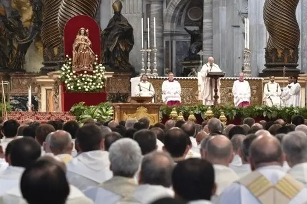 Verità, misericordia e gioia. Le tre grazie del Vangelo sono inseparabili. Nella Messa crismale papa Francesco parla ai sacerdoti e ricorda loro che, come Gesù, devono portare il lieto annuncio innanzitutto ai poveri. Un annuncio dato con gioia. «Al pari di Gesù», dice Francesco, «il sacerdote rende gioioso l’annuncio con tutta la sua persona. Quando predica l’omelia – breve, se possibile – lo fa con la gioia che tocca il cuore della sua gente mediante la Parola con cui il Signore ha toccato lui nella sua preghiera. Come ogni discepolo missionario, il sacerdote rende gioioso l’annuncio con tutto il suo essere. E, d’altra parte, sono proprio i particolari più piccoli – tutti lo abbiamo sperimentato – quelli che meglio contengono e comunicano la gioia: il particolare di chi fa un piccolo passo in più e fa sì che la misericordia trabocchi nelle terre di nessuno; il particolare di chi si decide a concretizzare e fissa giorno e ora dell’incontro; il particolare di chi lascia, con mite disponibilità, che usino il suo tempo…».