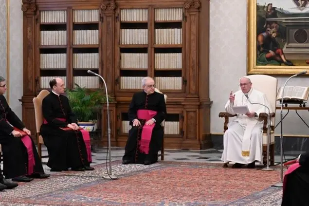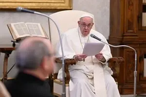 «Non dimentichiamo che il Signore è il Signore della compassione, della vicinanza, della tenerezza». Tre parole da non scordare. È l’invito, fatto a braccio, del Papa, nella catechesi dell’udienza di oggi, trasmessa in streaming dalla biblioteca privata del Palazzo apostolico e dedicata alla preghiera quotidiana. «Ogni giorno che inizia, se accolto nella preghiera, si accompagna al coraggio, così che i problemi da affrontare non siano più intralci alla nostra felicità, ma appelli di Dio, occasioni per il nostro incontro con lui», ha spiegato Francesco. «E quando uno è accompagnato dal Signore, si sente più coraggioso, più libero, anche più felice», ha aggiunto, ancora a braccio.