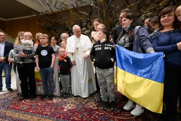 «Rinnoviamo le preghiere perché si fermi questa crudeltà selvaggia che è la guerra». Papa Francesco ha il cuore gonfio e al termine dell'udienza generale del mercoledì, arrivato al momento dei saluti finali, tra gli altri si rivolge in particolare ai «bambini ucraini, ospitati dalla Fondazione “Aiutiamoli a vivere”, dall’Associazione “Puer” e dall’ambasciata di Ucraina presso la Santa Sede», precvisando che con questo saluto torna «anche a pensare a questa mostruosità della guerra; rinnoviamo le preghiere perché si fermi questa crudeltà selvaggia che è la guerra».