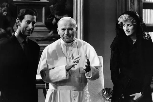 Proprio nel momento in cui iniziava a delinearsi il solco incolmabile con il marito, Diana si era imbattuta in una figura destinata a lasciare il segno nei suoi pensieri più intimi: Giovanni Paolo II. La royal couple è in visita in Italia e il 29 aprile 1985 viene ricevuta in udienza privata dal pontefice, futuro santo. Hanno già visto il Papa polacco a Londra, in occasione del suo storico viaggio in Inghilterra del 1982, quando il principe di Galles aveva accettato un invito dell’arcivescovo di Canterbury, Robert Runcie, massima autorità spirituale anglicana, a una funzione ecumenica nella cattedrale di Canterbury, circostanza che aveva scatenato la diffidenza e l’ostilità delle ali estreme della Chiesa Protestante.