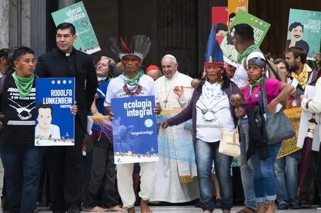 Senza ripete, né annullare quanto già detto al Sinodo, Bergoglio riprende una delle voci dell’assise: «Siamo colpiti», avevano detto gli indigeni, «dai commercianti di legname, da allevatori e altre parti terze. Minacciati da attori economici che implementano un modello estraneo ai nostri territori. Le imprese del legno entrano nel territorio per sfruttare la foresta, noi abbiamo cura della foresta per i nostri figli, abbiamo carne, pesce, medicine vegetali, alberi da frutto […]. La costruzione di impianti idroelettrici e il progetto di vie d’acqua ha un impatto sul fiume e sui territori […]. Siamo una regione di territori derubati».