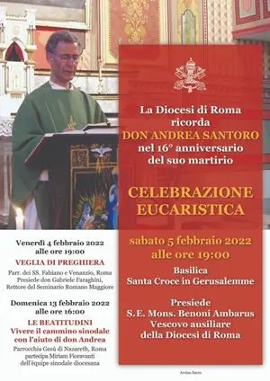 È uno dei tre appuntamenti organizzati dalla diocesi di Roma per tenerne viva ogni anno la memoria. Ieri sera, 4 febbraio, la parrocchia dei Santi Fabiano e Venanzio, di cui don Santoro fu parroco dal 1994 al 2000, ha ospitato la veglia di preghiera guidata dal rettore del Pontificio Seminario Romano Maggiore, don Gabriele Faraghini. Oggi, 5 febbraio, alle 19, nella basilica di Santa Croce in Gerusalemme, il vescovo Benoni Ambarus presiederà la celebrazione eucaristica. Appuntamenti a cui invita anche l’Associazione intitolata a don Andrea, nata pochi mesi dopo la sua morte e animata instancabilmente da molti suoi ex-parrocchiani: «Tanti amici e fedeli chiedevano dopo il suo martirio di ricordarlo, conoscerlo ancora meglio attraverso i suoi scritti. Si sono avvicinate anche persone che sono venute a sapere della sua uccisione e volevano saperne di più. Come famiglia, riceviamo sempre tanti messaggi», racconta Maddalena, anticipando che a breve la salma del sacerdote dovrebbe essere traslata dalla tomba dei parroci al cimitero Verano in una delle cappelle laterali della parrocchia dei Santi Fabiano e Venanzio. «Si aspetta solo l’ultima autorizzazione del Comune di Roma, la diocesi da tempo ha dato il suo benestare alla nuova sepoltura su richiesta della parrocchia».
