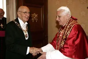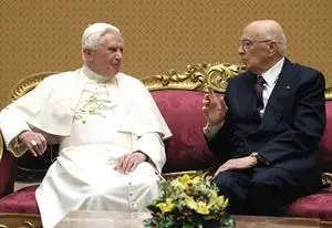 Durante il suo lungo mandato al Quirinale Giorgio Napolitano ebbe modo di evidenziare "grande affinità" anche con Benedetto XVI. Nel luglio 2012, ha voluto mettere nero su bianco in un articolo per l’Osservatore Romano dal titolo ‘Il mio amico Benedetto XVI’. quanto si sentisse vicino a Joseph Ratzinger. «Non esito a confessare –scriveva il Capo dello Stato- che una delle componenti più belle che hanno caratterizzato la mia esperienza è stato proprio il rapporto con Benedetto XVI. Abbiamo scoperto insieme una grande affinità, abbiamo vissuto un sentimento di grande e reciproco rispetto».