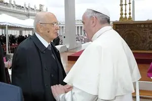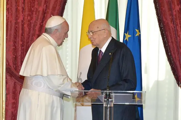 Poi, l'arrivo del Papa argentino. Jorge Mario Bergoglio piacque subito a Giorgio Napolitano, conquistato dal modo del tutto nuovo di interpretare il ruolo di vicario di Cristo, con la cancellazione, di fatto, del protocollo, con il rifiuto della croce d'oro, dell'auto d'ordinanza (all’incontro con lui, al Quirinale, papa Francescco arrivò a bordo di una Ford Focus con scorta ridotta), degli abiti e dei paramenti ricercati e, persino, dell'appartamento pontificio.