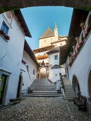 Una stretta forra, profonda cento metri e lunga oltre due chilometri, che conduce a uno spuntone di roccia sul quale nei secoli s’è aggrappato a strati un eremo di bellezza straordinaria in un contesto naturale di suggestione potente: è il percorso che fanno i visitatori partendo dal paese di Sanzeno, nel cuore della Val di Non, per giungere al santuario. Lo stesso che ogni anno, la notte del 14 gennaio, il giorno prima della festa di San Romedio eremita, compie la processione silenziosa al lume delle fiaccole per salire fin quassù.