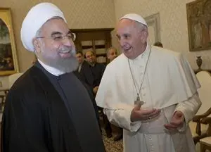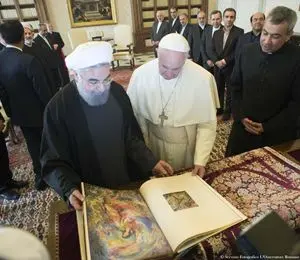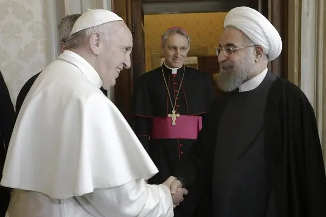 Giunto in una blindatissima via della Conciliazione con un corteo, tra seguito e sicurezza, di decine di mezzi (27 auto, molte identiche e senza insegne diplomatiche, più diverse motociclette), Hassan Rouhani è stato il secondo presidente iraniano a varcare il portone di Bronzo, dopo la vista di Mohammad Khatami a Giovanni Paolo II nel 1999.