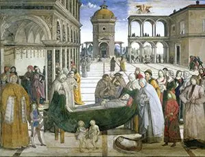 Bernardino nacque a Massa Marittima, nella Maremma toscana, l’8 settembre 1380, dall’aristocratica famiglia degli Albizzeschi. Il giorno della sua nascita, la festa della Natività di Maria, torna spesso nella sua vita ed egli lo considerò un segno particolare. Rimasto da giovanissimo orfano di padre e di madre, venne cresciuto da due zie a Siena. Ventenne, abbandonò gli studi di diritto per assistere gli ammalati e i moribondi nella grande peste del 1400, durante la quale contrasse a sua volta il contagio. Guarito, conservò tuttavia il ricordo della tremenda malattia subita e della grazia della guarigione come segni d’una chiamata, che lo aveva profondamente cambiato dall’interno e disposto a testimoniare con fervore la fede nel Cristo: distribuì dunque tutti i suoi averi ai poveri ed entrò nel giorno stesso del compimento del suo ventesimo anno d’età, l’8 settembre 1400, nell’Ordine dei frati Minori, scegliendo al suo interno la famiglia più rigorosa, quella dell’Osservanza. Esattamente quattro anni più tardi, l’8 settembre 1404, celebrò la sua prima messa.