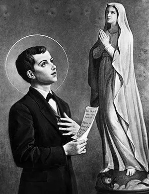 Quando Domenico Savio morì, Don Bosco era talmente convinto della sua santità che decise di pubblicarne subito la biografia. In effetti, questo ragazzo morto a poco più di quattordici anni aveva tutte le carte in regola per essere additato come modello ai giovani. Domenico nacque a Riva di Chieri, in provincia di Torino, il 2 aprile 1842. Il padre era un fabbro ferraio, la mamma una brava sarta. Due anni dopo, per motivi di lavoro, la famiglia si trasferì a Murialdo, a poca distanza da Castelnuovo d’Asti, paese natale di Don Bosco. Il cappellano Don Giovanni Battista Zucca, rimase colpito dalla precocità spirituale del ragazzino, tanto che decise di ammetterlo a 7 anni – cosa straordinaria per quei tempi – alla prima comunione. Quel giorno (era la domenica di Pasqua del 1849) su un foglietto conservato da lui in un libro di preghiere e trovato poi da Don Bosco, il piccolo Domenico scrisse testualmente: “1. Mi confesserò molto sovente e farò la comunione tutte le volte che il confessore mi darà licenza. 2. Voglio santificare i giorni festivi. 3. I miei amici saranno Gesù e Maria. 4. La morte, ma non peccati”. Questi propositi furono il suo programma di vita.
