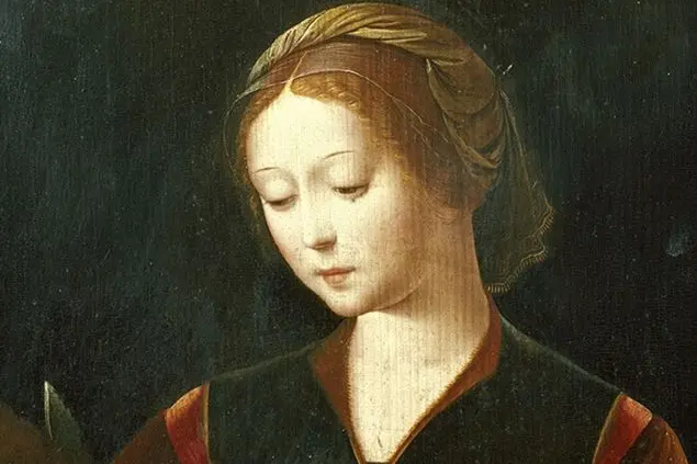 Secondo la tradizione Caterina, giovane cristiana nobile, bella e colta, fu martirizzata nel 305 ad Alessandria d’Egitto, centro di antiche culture e capitale della tradizione sapienziale cristiana. I testi, tardivi, con il racconto della vita e del martirio sono una Passio greca del VI-VII secolo scritta probabilmente con scopi edificanti da un chierico di Alessandria o da un monaco del Sinai, e una Conversio forse del secolo VIII. Il suo martirio si colloca all’epoca di Massenzio, o Massimino, che perseguitarono duramente i cristiani. In occasione di una grande celebrazione sacrificale agli dei voluta dall’imperatore, Caterina, rifiutandosi di aderire, avrebbe così apostrofato il sovrano: “Perché vuoi perdere questa folla con il culto degli dei? Impara a conoscere Dio, creatore del mondo e suo Figlio Gesù Cristo che con la croce ha liberato l’umanità dall’inferno”.