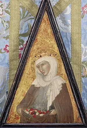 Elisabetta, figlia del re Andrea II d’Ungheria e di Gertrude di Merano – discendente da Carlo Magno – nacque nel 1207 nel castello di Bratislava. Nel 1211 lasciò la corte paterna, con una ricchissima dote, e fu condotta al castello di Wartburg in Turingia, per essere cresciuta nella famiglia del futuro sposo Ludwig figlio del signore di quella regione, il langravio Hermann, che secondo la leggenda sarebbe stato avvisato da un trovatore della nascita della bambina, “una meravigliosa stella” la cui santità si sarebbe irraggiata in tutto il mondo. Con il fidanzato si instaurò un profondo legame di affetto e amicizia. Si manifesta presto in Elisabetta una profonda spiritualità, caratterizzata dall’aderenza alla volontà di Dio, unita al disprezzo per le ricchezze e le vanità del mondo. La pietà e la carità di Elisabetta erano grandi, ma non sempre condivise dalla famiglia. In quel periodo i rapporti tra la Turingia e il principato vescovile di Magonza erano molto tesi per la supremazia che ambedue i signori ritenevano di avere sul territorio. La situazione si esacerbò a tal punto che il vescovo di Magonza scomunicò Hermann, che in queste condizioni morì nel 1217: gli successe Ludwig, che nella primavera del 1221 sposò Elisabetta.