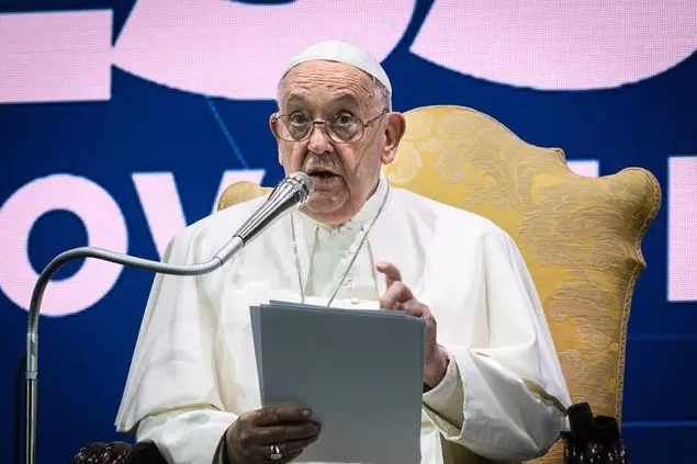 Terza e ultima parola, «il coraggio. E qui mi rivolgo particolarmente ai giovani. So che per molti di voi il futuro può apparire inquietante, e che tra denatalità, guerre, pandemie e mutamenti climatici non è facile mantenere viva la speranza. Ma non arrendetevi, abbiate fiducia, perché il domani non è qualcosa di ineluttabile: lo costruiamo insieme, e in questo “insieme” prima di tutto troviamo il Signore. È Lui che, nel Vangelo, ci insegna quel “ma io vi dico” che cambia le cose: un “ma” che profuma di salvezza, che prepara un “fuori schema”, una rottura. Facciamo nostro questo “ma”, tutti, qui e ora. Non rassegniamoci a un copione già scritto da altri, mettiamoci a remare per invertire la rotta, anche a costo di andare controcorrente! Come fanno le mamme e i papà della Fondazione per la Natalità, che ogni anno organizzano questo evento, questo “cantiere di speranza” che ci aiuta a pensare, e che cresce, coinvolgendo sempre più il mondo della politica, delle imprese, delle banche, dello sport, dello spettacolo e del giornalismo.