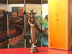 Nel 1924 il delegato apostolico Celso Costantini convocò a Shanghai il primo Sinodo cinese, che adottò l’immagine come Regina della Cina. Fu commissionato un dipinto raffigurante la madre di Dio con il bambino e fu collocato nel santuario: questa immagine continua a essere molto venerata nella basilica di Sheshan, in cima all’altare maggiore. I pellegrinaggi annuali ebbero inizio allora, facendone il santuario di pellegrinaggio cattolico più importante della Cina. Durante la Rivoluzione culturale la statua originale fu distrutta. Nell’aprile del 2000 il vescovo Aloysius Jin Luxian fece costruire una nuova statua: la Vergine Maria, eretta, solleva il bambino Gesù sopra il suo capo, con le braccia distese in un gesto a croce. Alla base c’è il drago, con una coda tridente, schiacciato e sconfitto dalla Madonna.