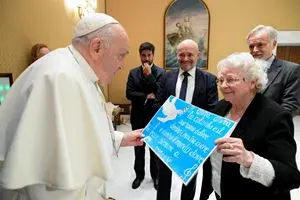 A margine dell’udienza, papa Francesco ha incontrato, per la terza volta negli ultimi sette anni, Roselyne Hamel, la sorella di padre Jacques Hamel, il sacerdote francese ucciso da due giovani fondamentalisti il 26 luglio del 2016 nella sua parrocchia di Saint-Etienne-du-Rouvray (Rouen) dove stava celebrando la Messa. La donna, 83 anni, ha donato al Pontefice un disegno con la colomba e l'ulivo e le parole di una ballata che recitava con il fratello e anche una delle ultime omelie del sacerdote e l'assicurazione della preghiera affinché il fratello interceda per la salute dello stesso Pontefice.