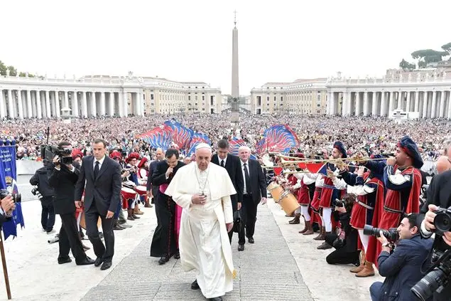 Come sono le nostre comunità cristiane? “Intorpidite e stanche” oppure vivono la “speranza”? Papa Francesco ha posto domande severe alla Chiesa, dunque ai fedeli e anche a se stesso nell’udienza di mercoledì in piazza san Pietro. Si tratta di capire se i cristiani si occupano solo di proteggere la propria storia personale e di popolo oppure se sono capaci di “stare sempre con il Signore” e quindi di non avere traguardi che quello del Vangelo. Ha letto il racconto dell’Apocalisse della “Gerusalemme nuova” che è simbolo di nuova “convivenza” tra uomini e tra loro e Dio. Ha spiegato: “Che bello poter contemplare secondo un'altra immagine suggestiva dell'Apocalisse, tutti i popoli radunati insieme in questa città dove sarà lo spirito di Dio, non ci saranno prevaricazioni e distinzioni di alcun genere, di natura sociale, etnica o religiosa, ma saremo tutti una sola cosa in Cristo”. Ma, ed ecco la domanda: “ Le nostre comunità vivono nella attesa calorosa della sua presenza o appaiono stanche, intorpidite sotto il peso della vita?” E ancora: “Corriamo anche noi il rischio di esaurire l'olio della fede e della gioia? Stiamo attenti”, ha ammonito il Papa. Nei saluti in italiano ha chiesti di nuovo di pregare per il Sinodo dei vescovi sulla famiglia.