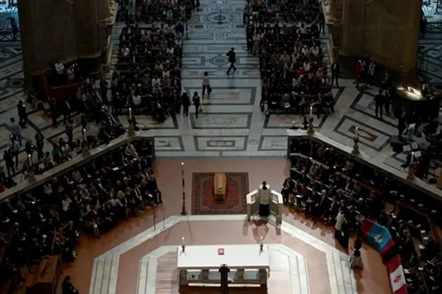 Da ultimo, non possiamo nascondere che questa nostra celebrazione, come accade per le esequie di ogni credente, non è solo proclamazione di fede, memoria grata, ma anche invocazione di misericordia. Di perdono e misericordia abbiamo bisogno tutti di fronte al mistero di Dio. Ne era ben consapevole Franco Zeffirelli, che parlando di sé si collocava nell’orizzonte della fede, «quella alla quale mi sono aggrappato nei momenti difficili, da peccatore certo, ma soprattutto da uomo che ha sempre riposto la fiducia nel Signore». Parole che sentiamo di poter e dover condividere, sia nel riconoscimento delle fragilità, sia nell’aspirazione all’affidamento al Signore. Per questo sentiamo di doverci far voce di questo nostro fratello che si accosta al trono di Dio, invocando per lui e con lui la misericordia di cui tutti abbiamo bisogno e che il Padre non nega ai figli che gli si affidano. Alla paternità di Dio, che è ben oltre e sana ogni paternità umana, affidiamo il nostro fratello Franco, perché i riflessi della bellezza eterna che egli ha diffuso tra noi siano ora da lui contemplati in pienezza per l’eternità.