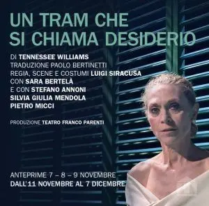UN TRAM CHE SI CHIAMA DESIDERIO di Tennessee Williams. Traduzione di Paolo Bertinetti. Regia, scene e costumi di Luigi Siracusa. Con Sara Bertelà e con Stefano Annoni, Silvia Giulia Mendola, Pietro Micci. Luci di Pasquale Mari. Musiche di Laurence Mazzoni. Produzione Teatro Franco Parenti di Milano. Fino al 7 dicembre, Teatro Franco Parenti, sala blu, Via Pier Lombardo 14, Milano, info: 02.59995206