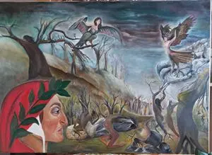 Maria Torre ci manda il suo dipinto olio e acrilico su tela dal titolo Dante, la selva dei suicidi.